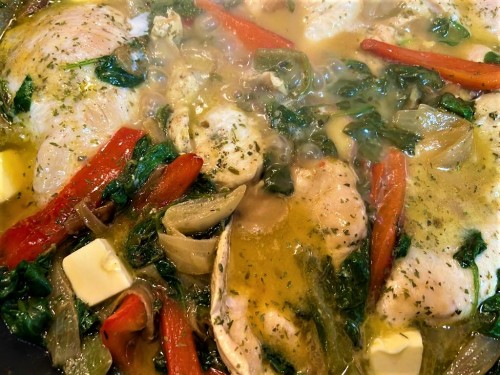 Esta receta surge como opción 2 del pollo al limón, el cambio surge en cambiar los champiñones y setas de la receta original al limón , por espinacas y un toque de mantequilla, es una buena opción si quieres darle un aire diferente a la receta, e ir cambiando y no repetir. Gala