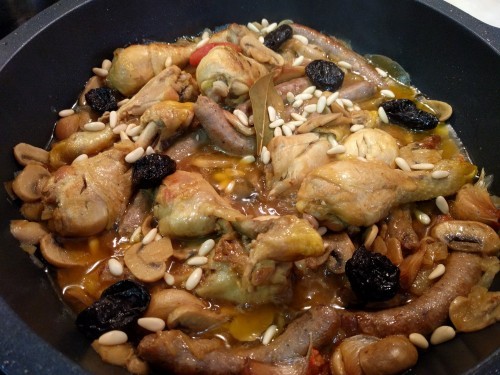 5Ho tapem i deixem bullir 50 min. Després hi posem les prunes i els pinyons i ho deixem 30 minuts més.