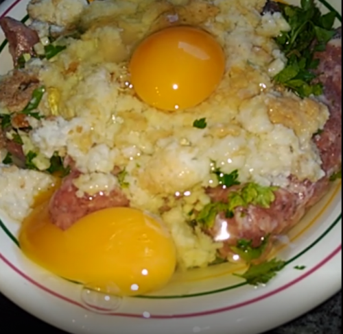 3Agafem un vas i l'omplim de llet. Hi afegim la molla del pa sec. Quan sigui ben tou ho afegim al plat amb la carn.