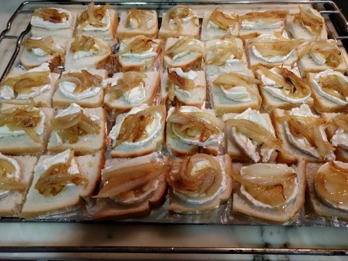 Torradetes amb formatge de cabra i ceba carmelitza 30'