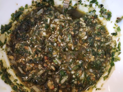 3Un cop ho tenim tot picat, posem el pesto en un bol, i ho barregem amb una mica de parmesà per donar-li consistencia.