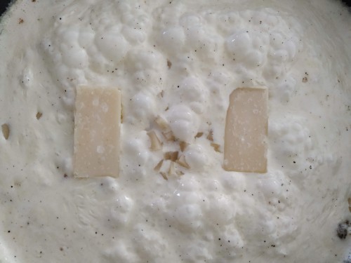 3Esperem que la nata es vagi tornan mes densa i després hi afegim una mica de formatge.