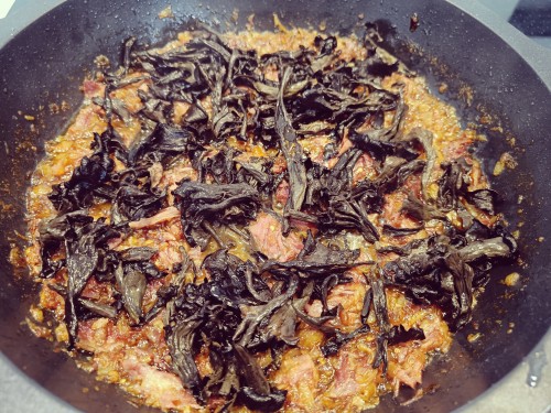 4Li tirem les trompetes de la mort i ho deixem tot junt uns 10 minuts. Si les trompetes de la mort estan deshidretades les haurem hagut de posar abans 1h amb aigua.