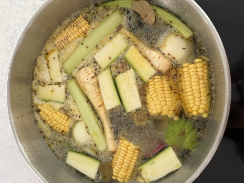 Se trata de una fusion del caldo de siempre con inspiracion en el puchero canario de maiz. Gala